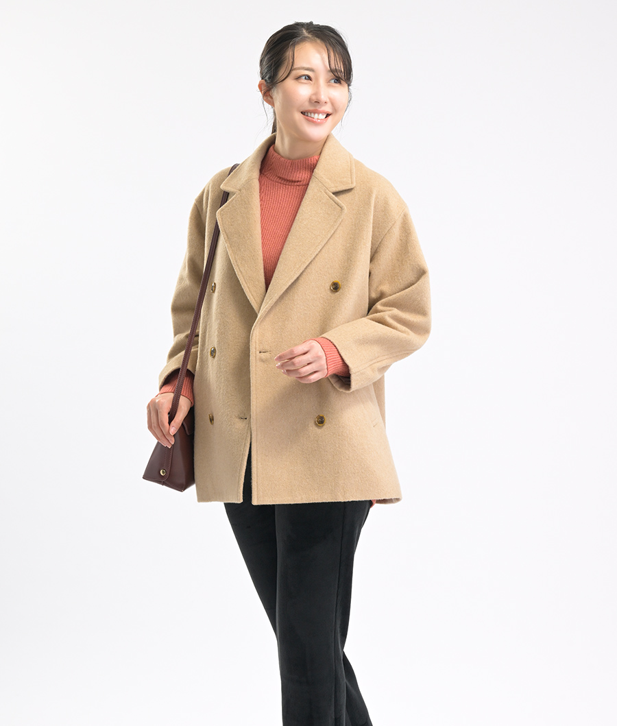 レディース尾州ウール使用テーラー衿ショートコート