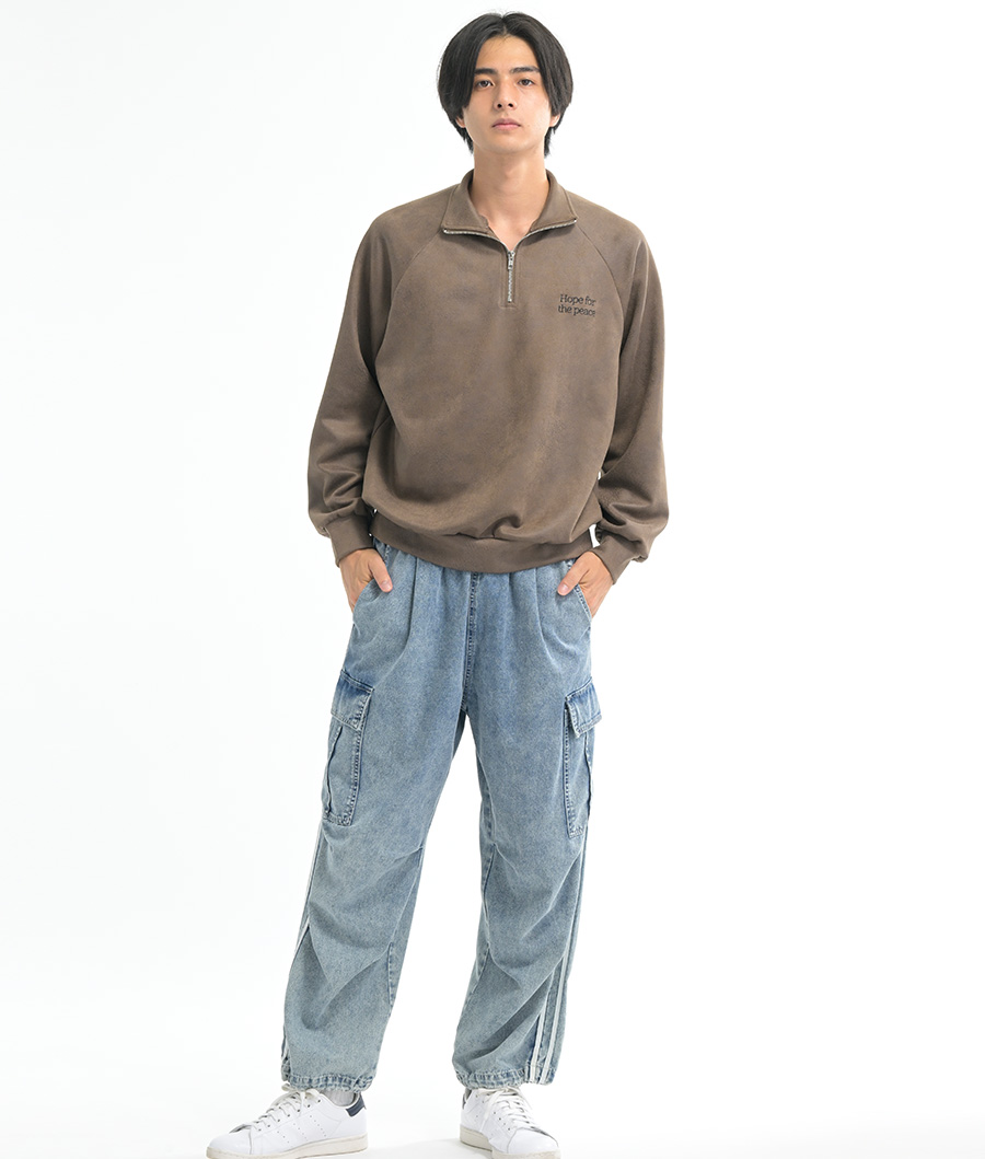 メンズ合皮風カットスエードハーフジッププルオーバー