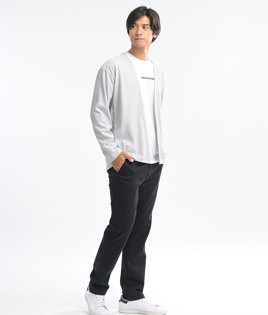 ~サテン織りのストレッチパンツ。ウエストゴム仕様で履き心地抜群。どんなトップスとも合わせ易いおすすめの1本。~