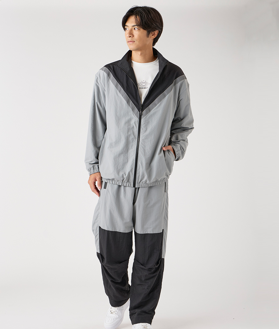 リフレクターテープがフロントに大胆に入っているのがポイントのスポーツジャケット。