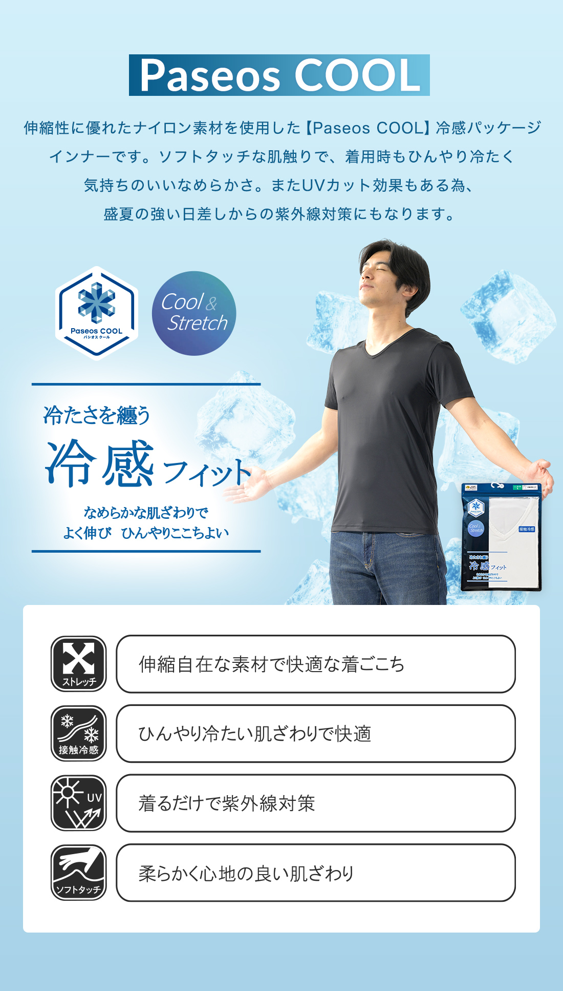 ~【Paseos COOL】の接触冷感インナー。