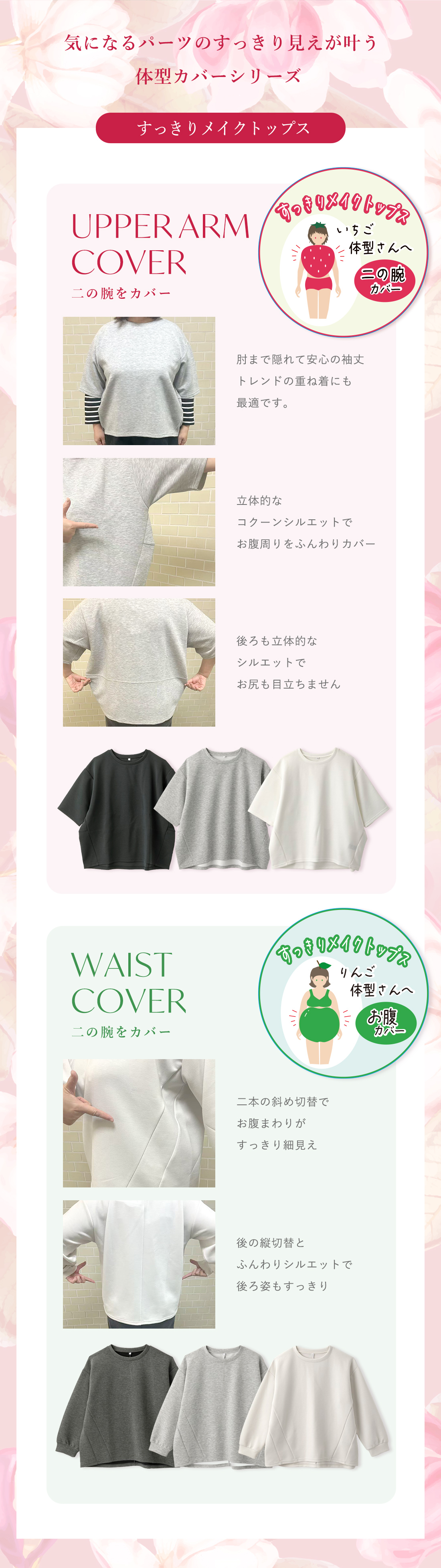 ~りんご体型さん向けのお腹カバーといちご体型さん向けの二の腕カバーの優れもの~