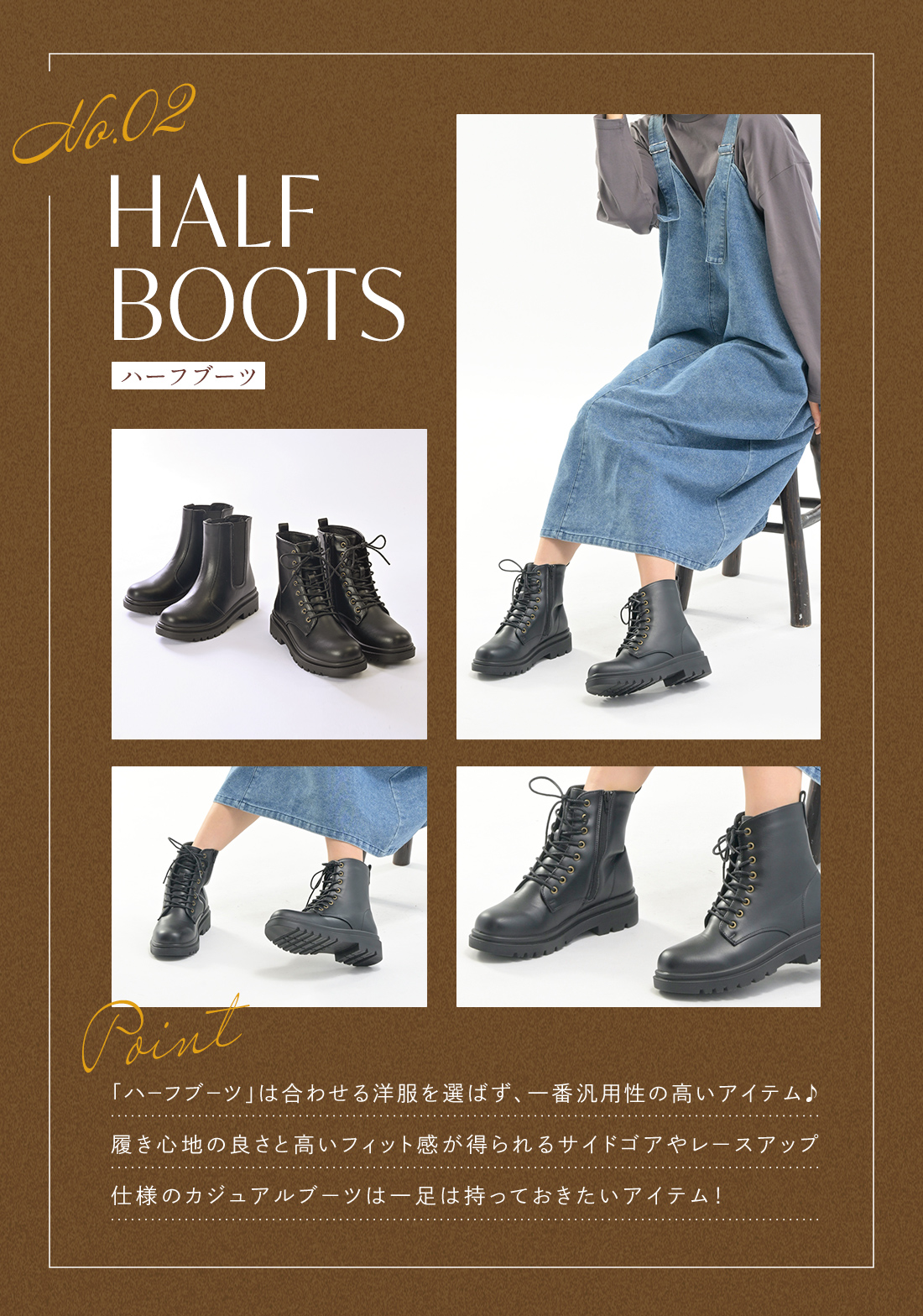 ~カジュアルな雰囲気を醸し出せる存在感たっぷりのレースアップブーツ。コーデのアクセントに魅力的♪~