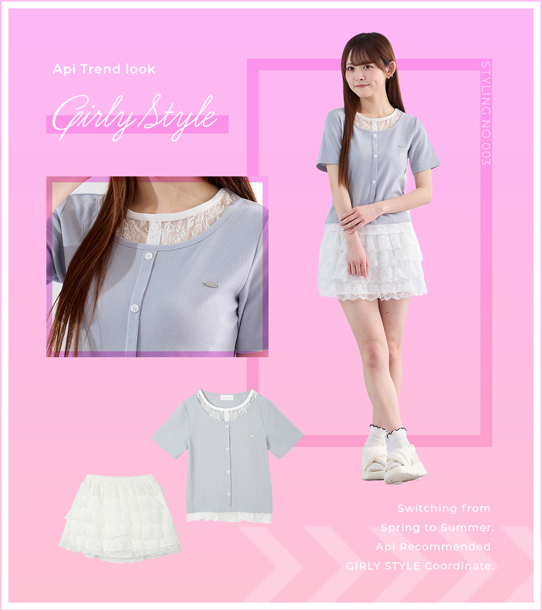 ~ボリューム感のあるレースレイヤード~【Api】【トレンドスタイル】レディースレースミニスカート商品番号:41-107-534-21~24