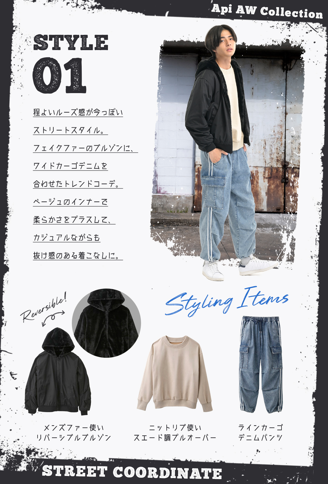 ~今年はファー推し~【Api】【トレンドスタイル】メンズファー使いリバーシブルブルゾンサイズ:M・L商品番号:51-201-205-61~