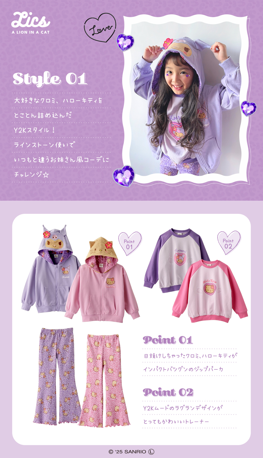~ママインフルエンサープロデュースブランド【LICS】~【LICS】【サンリオ】ガールズトレーナーカラー:ピンクパープルサイズ:120・130㎝商品番号:62-705-319-41~46