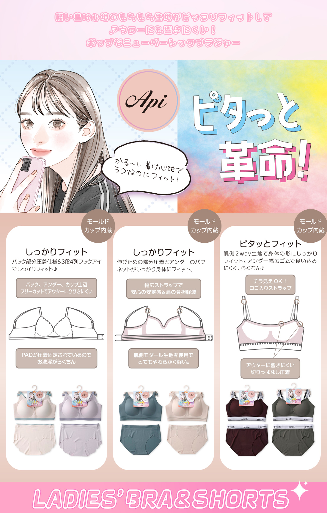 ~軽い着け心地のもちもち生地がピッタリフィットしてアウターにも響きにくい!ポップなニューベーシックブラジャー~