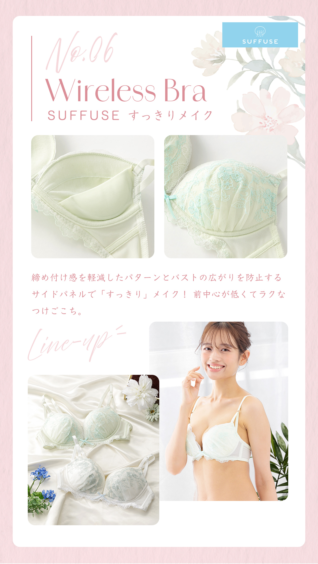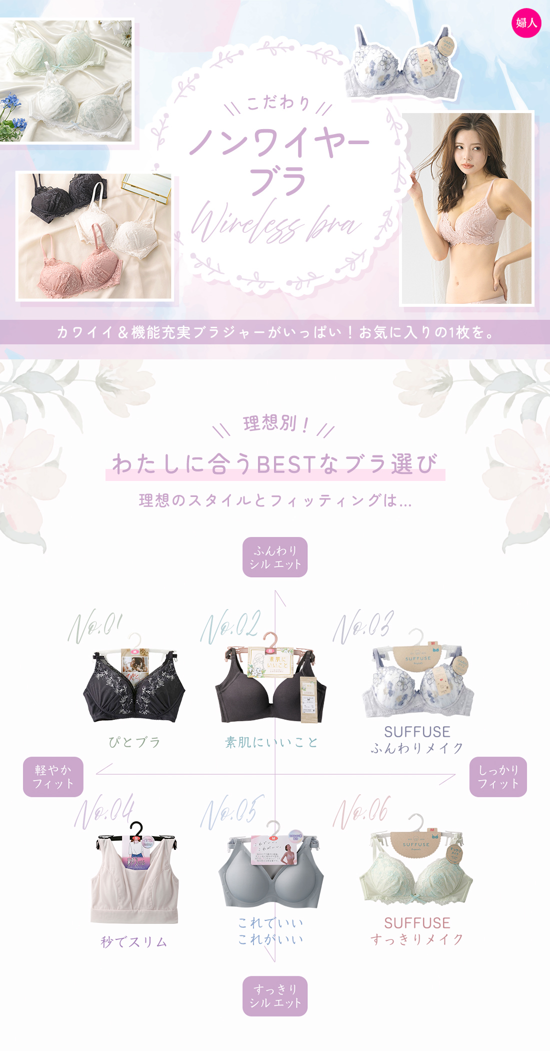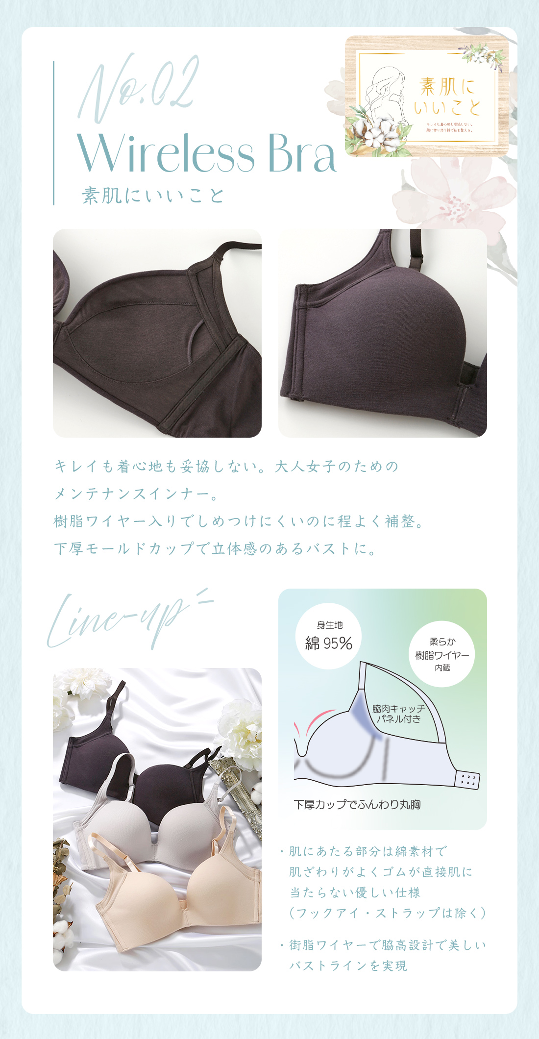 ~キレイも着心地も妥協しない。大人女子のためのメンテナンスインナー。樹脂ワイヤー入りでしめつけないのに程よく補整~