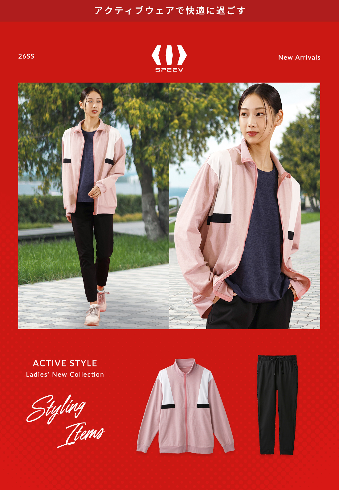 ~配色切替が特徴的なスポーツテイストのパーカ~【SPEEV】【アクティブスタイル】レディース 切替ジップパーカカラー:ピンクサイズ:M/L商品番号:03-003-010-01~