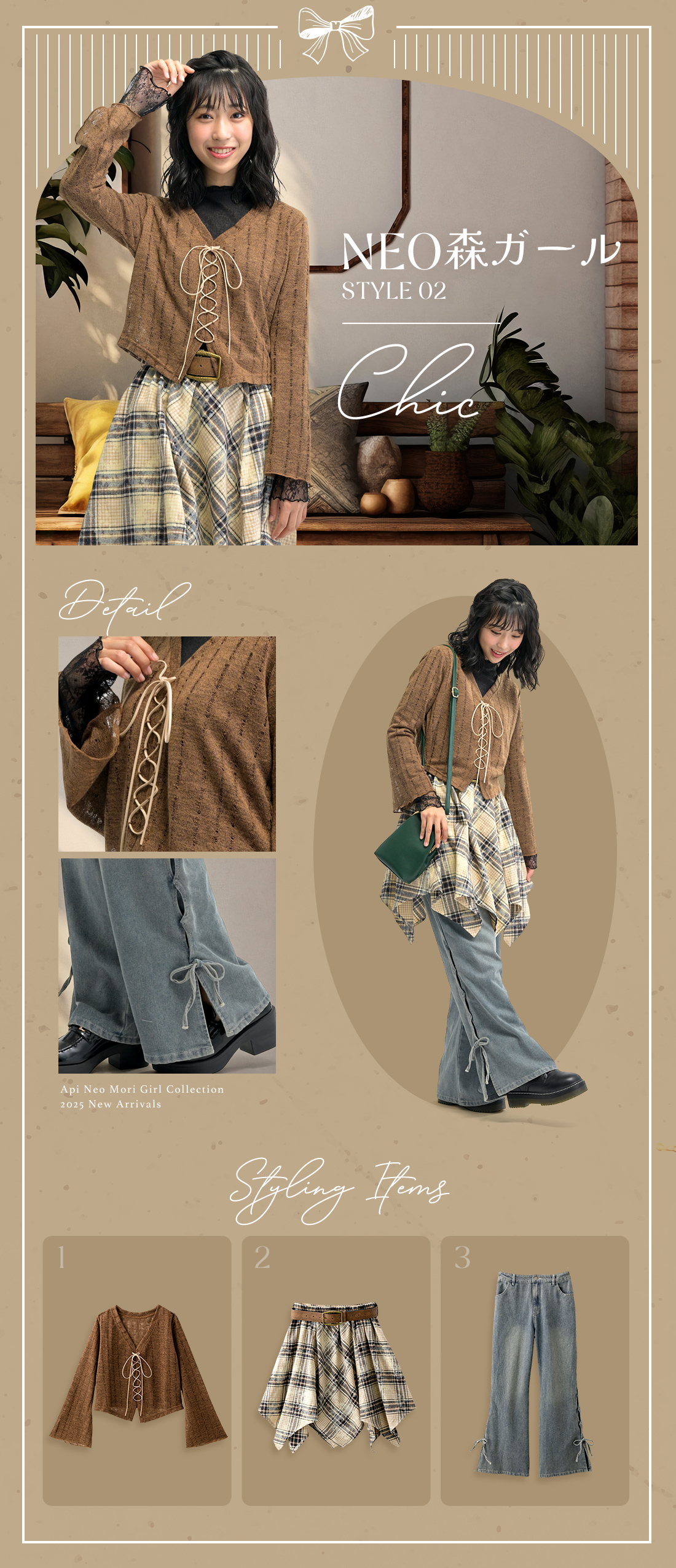 ~胸元のレースアップと素材感がナチュラルな印象のトップス~