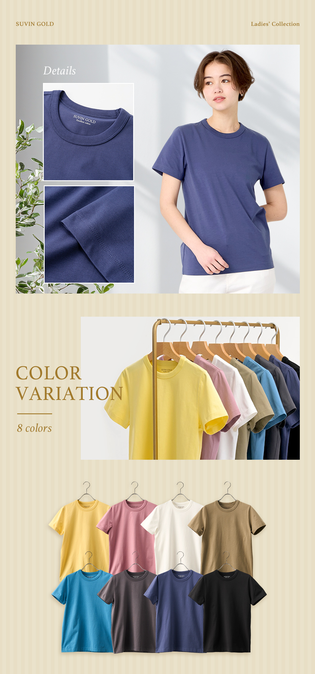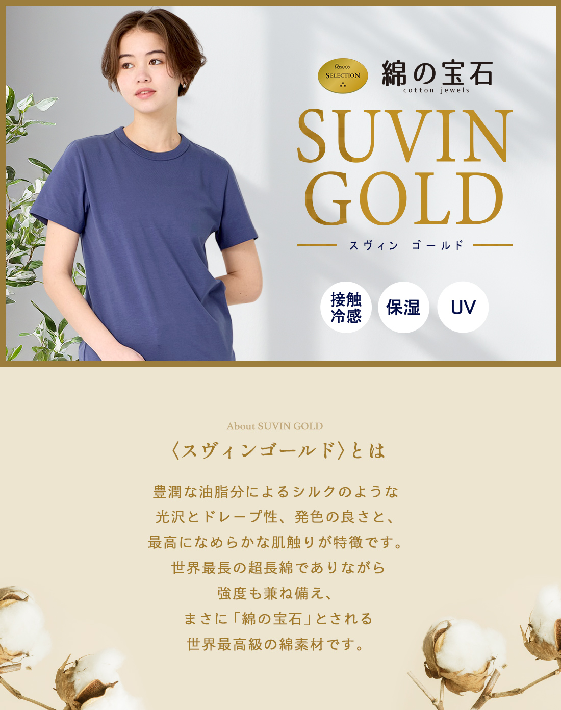 ~カシミヤのような肌触りを持った世界最高級のコットンです~【SUFFUSE】【今風カジュアル】【綿の宝石「スヴィンゴールド」】レディースTシャツ各種商品番号:42-101-497-41~92