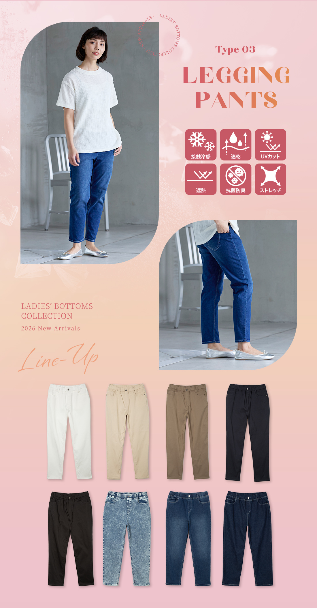 ~パシオスの大定番、夏ボトム~【SUFFUSE】【今風カジュアル】ICE ACTIVEレディース冷感ボトム レギンスカラー:オフクロベージュネイビーモカサックスブルーインディゴサイズ:M・L・LL商品番号:43-551-240-01~43-551-240-21~