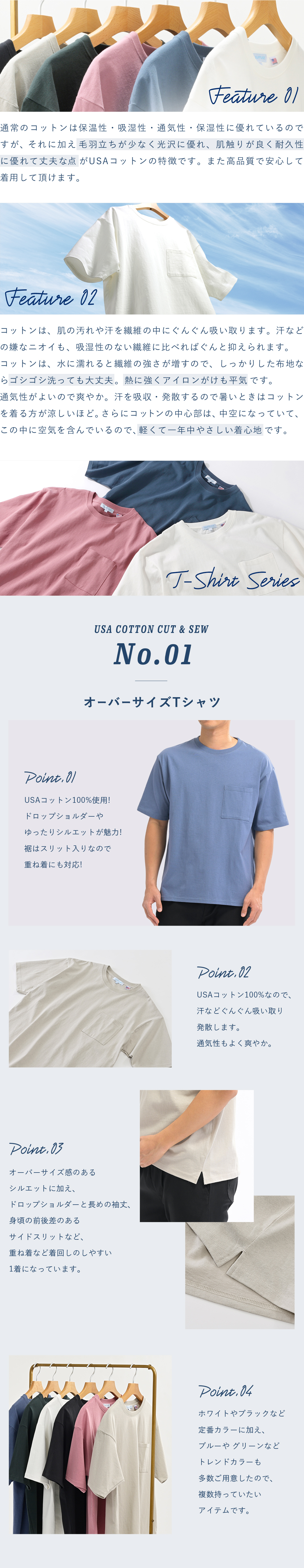 ~ドロップショルダーやゆったりシルエットが魅力!裾はスリット入りなので重ね着にも対応!USAコットン使用!~
