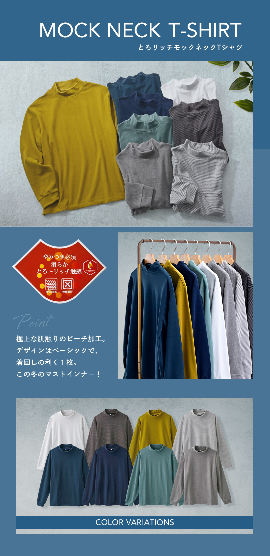 ~極上な肌触りのピーチ加工。デザインはベーシックで着回しの利く1枚。この冬のマストインナー!~