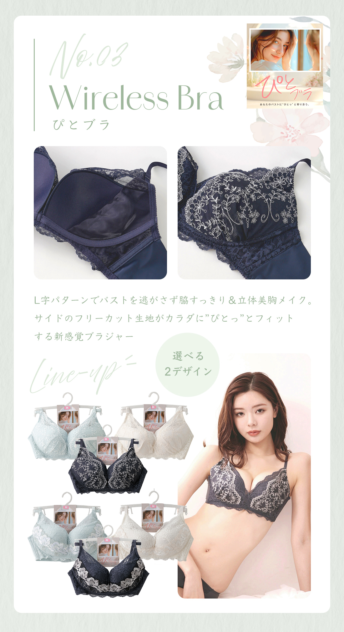 ~L字パターンでバストを逃がさず脇すっきり&立体美胸メイク。サイドのフリーカット生地がカラダに”ぴとっ”とフィットする新感覚ブラジャー~